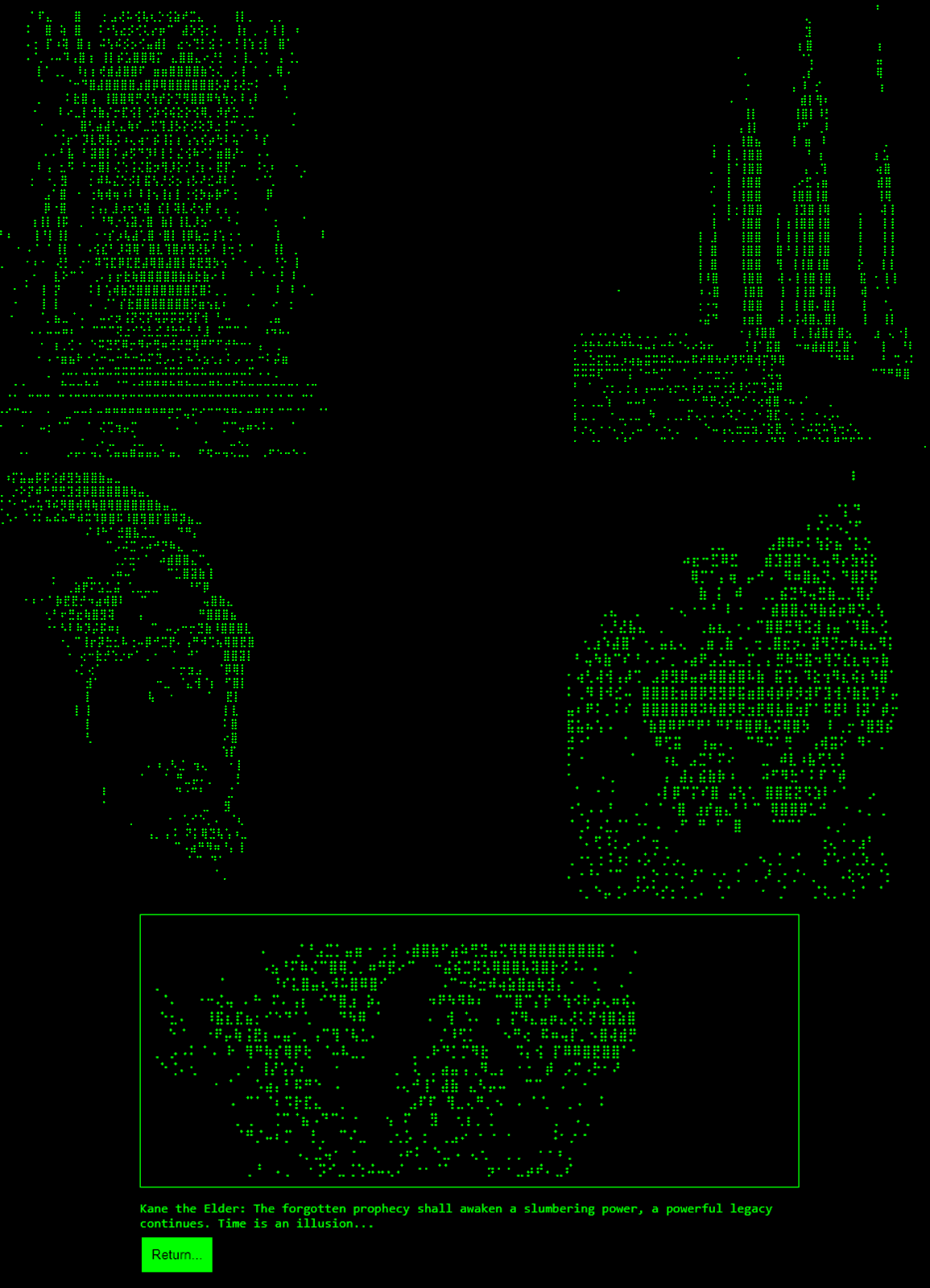 - Highly intricate "Kane the Elder" NPC with randomly generated prophecy messages